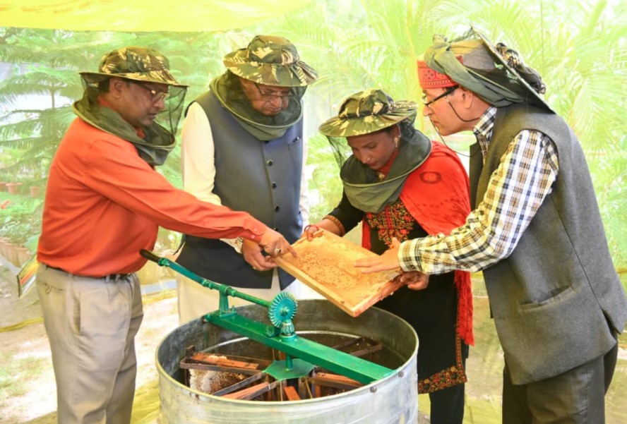 कृषि मंत्री गणेश जोशी ने अपने शासकीय आवास में निकाला शहद
