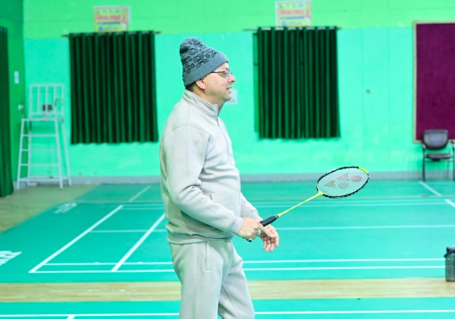 मुख्यमंत्री धामी ने इंडोर स्टेडियम में नवोदित खिलाड़ियों के साथ खेला बैडमिंटन