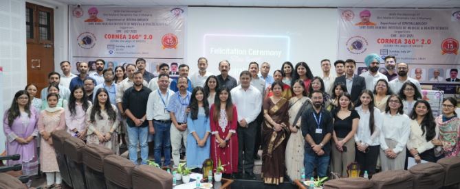 देहरादून। श्री गुरु राम राय इंस्टीट्यूट ऑफ मेडिकल एंड हेल्थ साइंसेज, श्री महंत इन्दिरेश अस्पताल के नेत्र रोग विभाग द्वारा रविवार को एक दिवसीय उच्चस्तरीय निरंतर चिकित्सा शिक्षा कार्यक्रम (सी.एम.ई.) ‘काॅर्निया 360° 2.0’ का आयोजन किया गया। कार्यक्रम का उद्देश्य रूमेटाइड आर्थराइटिस से पीड़ित रोगियों में होने वाली काॅर्निया संबंधी जटिलताओं पर जनजागरुकता फैलाना एवम् बीमारी की रोकथाम पर प्रकाश डालना था।