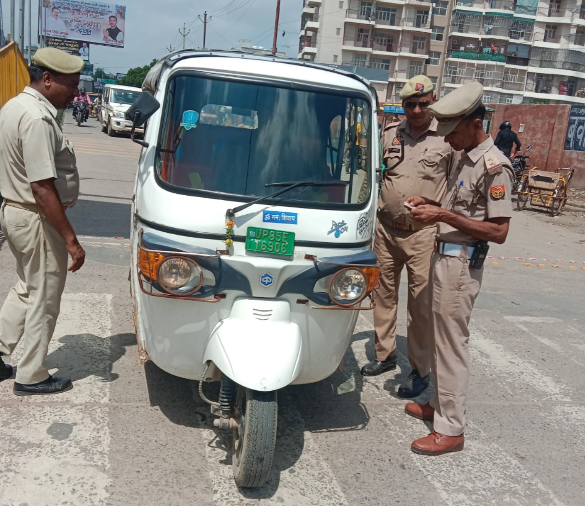 मथुरा- मथुरा ट्रैफिक पुलिस द्वारा बढ़ती दुर्घनाओं की रोकथाम और मथुरा वृन्दावन को जाम मुक्त करने हेतु विशेष अभियान चलाकर ट्रैफिक नियमों का उल्लंघन करने वाले टेंपो और ई-रिक्शाओं का 665 का एमवी एक्ट में चालान किया और 18 ई-रिक्शा व टेम्पो को सीज किया गया तथा फुटपाथ खाली कराया गया